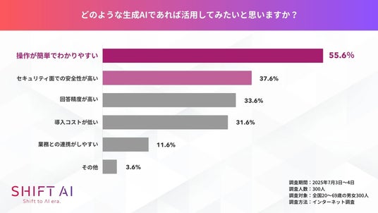 - 活用したくなる生成AIの条件は「操作が簡単でわかりやすい」「セキュリティ面での安全性が高い」