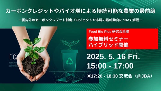 ネイチャーベースのカーボンクレジット創出販売事業を展開するGreen Carbon株式会社(代表取締役:大北潤、以下:Green Carbon(読み;グリーンカーボン))は、バイオインダストリー協会(以下:JBA)に属するFood Bio Plus研究会が主催する「カーボンクレジットやバイオ炭による持続可能な農業の最前線(以下、本セミナー)」が5月16日(金)15:00~17:00に開催することをお知らせします。Green Carbonからは、代表取締役の大北が登壇します。