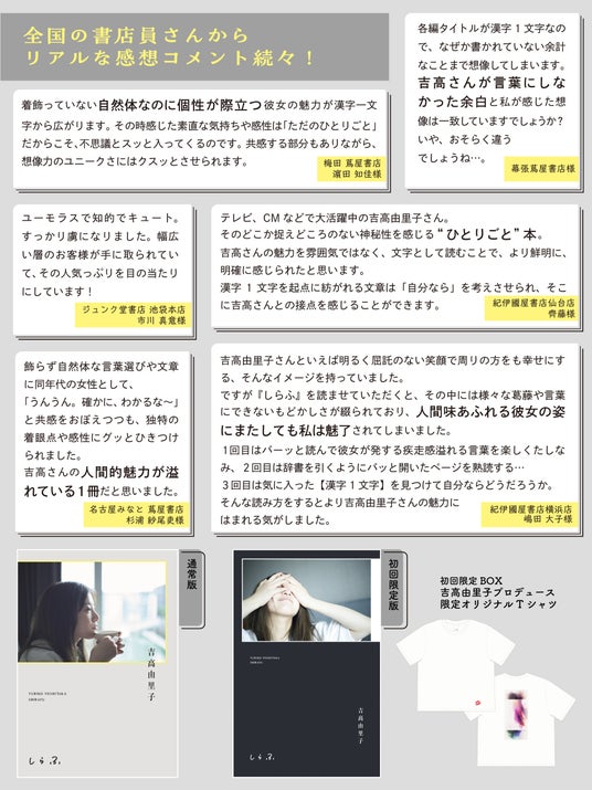 これまでもXでのポストやインタビューなどでたびたび発する“言葉”が注目を集めてきた吉高。この本ではその先の彼女の“感性”が鮮やかにクローズアップされ、今まで味わったことのない吉高ワールドにどっぷりと浸かることができる。