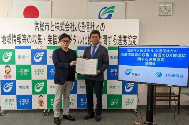 株式会社JX通信社(東京都千代田区 代表取締役 米重克洋、以下 当社)は、2月28日(火)、 茨城県常総市(市長:神達岳志、以下 常総市)と、常総市の災害時における情報収集・発信に関するDX推進を目的とした協定を締結しました。