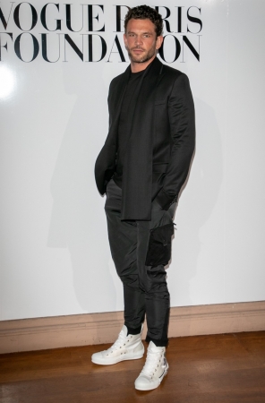 アルノー・ヴァロワは、パリで行われたVOGUE主催のディナーにディオール スプリング 2020 メンズ コレクションからブラック ウール ツイル ピークラペル ジャケットにB23ホワイトハイトップスニーカーを纏って登場いたしました。