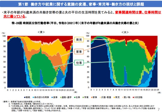 加えて日本では家事などの無償労働が女性に、仕事時間が男性に偏る傾向があり(※1)、仕事と家事・育児の両方を母親が担うワンオペが、女性の社会進出の遅れや収入格差を助長している面があります。