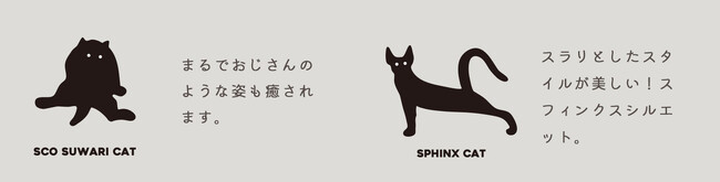猫独特のポーズを切り取った、猫好きにはたまらないデザイン
