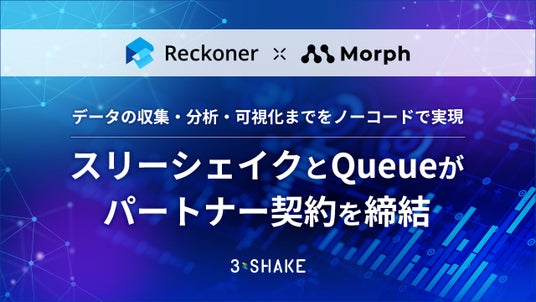 これにより、スリーシェイクが提供するクラウド型データ連携ツール「Reckoner(レコナー)」と、Queueが提供するアジャイルなデータ活用のためのクラウドIDE「Morph(モルフ)」が連携することで、企業のデータ収集から分析、可視化までをノーコードで誰でも簡単に行うことが可能になります。