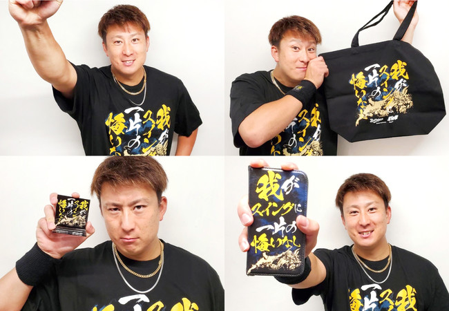 「杉本裕太郎選手×ラオウ」のコラボ名言グッズは、主軸としてチームを牽引した、杉本裕太郎選手の愛称「ラオウ」が定着したきっかけとなるフレーズ「我がスイングに一片の悔いなし」の言葉を前面的に押しだしたデザインです。杉本選手の隣には「ラオウ」が君臨し、フレーズと共にコラボ感を演出しています。