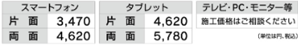 カーナビの場合は、作業時間は10分で価格は税込み3750円と、手頃に施工ができるのに対し、耐久は約2年間でコストパフォーマンスの良さを実現しています。