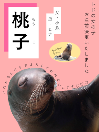 この度は素敵なお名前候補、そしてたくさんの投票をありがとうございました。「桃子(ももこ)」というとっても素敵で、また愛称である"鉄子"っぽさも残した可愛いお名前を本当にありがとうございました。これからも「桃子(ももこ)」と一緒にスタッフも成長していきたいと思います。(海獣スタッフ:金子)