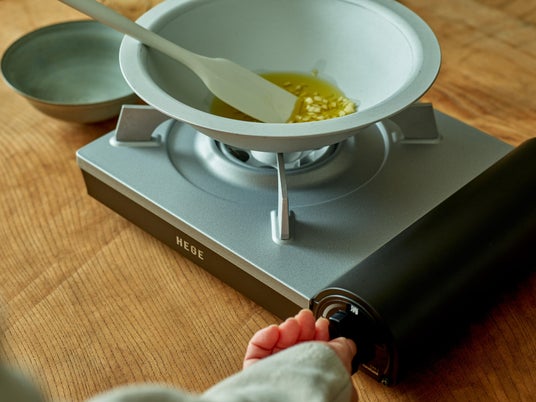 また、アルミニウムとの異素材ミックスが、食卓に新しい風景をもたらすφ280直火鍋専用のオリジナルさわら木蓋 29cmとφ250直火鍋専用のオリジナルさわら木蓋 26cmも同時発売。Official Site限定で、 HEGEがカスタムしたイワタニ カセットこんろも発売致します。