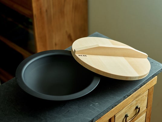 家族や友人などと一緒に調理をするのにおすすめのφ280直火鍋に、耐水性‧耐湿性に優れた丈夫な日本製‧木曽産のさわら材を使用したHEGEオリジナルさわら木蓋がついたセット。