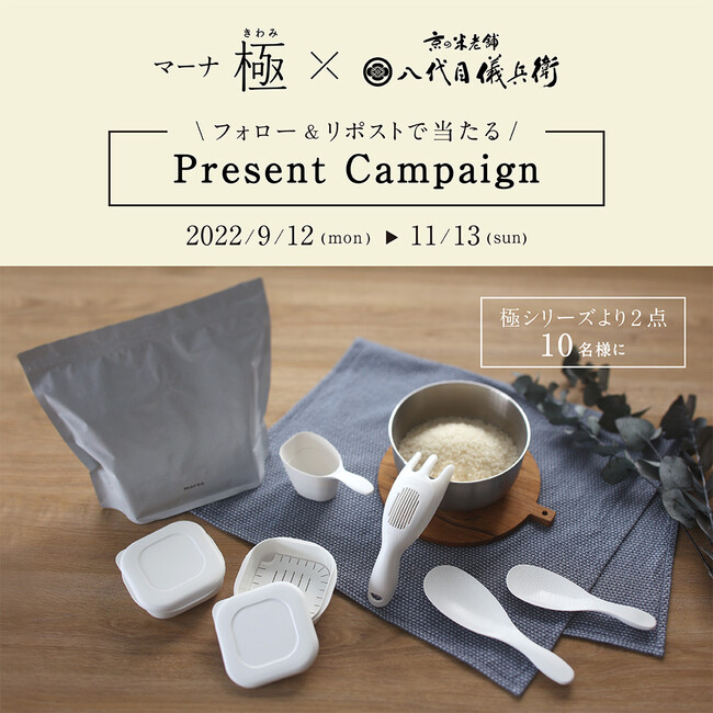 生活雑貨メーカー株式会社マーナ(東京都墨田区、代表取締役 名児耶 美樹[なごや よしき])は、お米を味わうための道具「極(きわみ) 」シリーズのキャンペーンを2022年9月12日から2022年11月13日まで開催いたします。