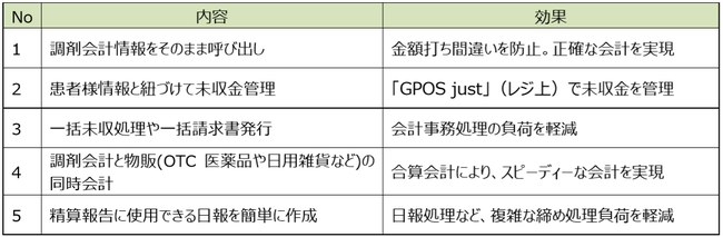 ■主な特徴(レセプトコンピューター × GPOS just × stera terminalで可能な機能)