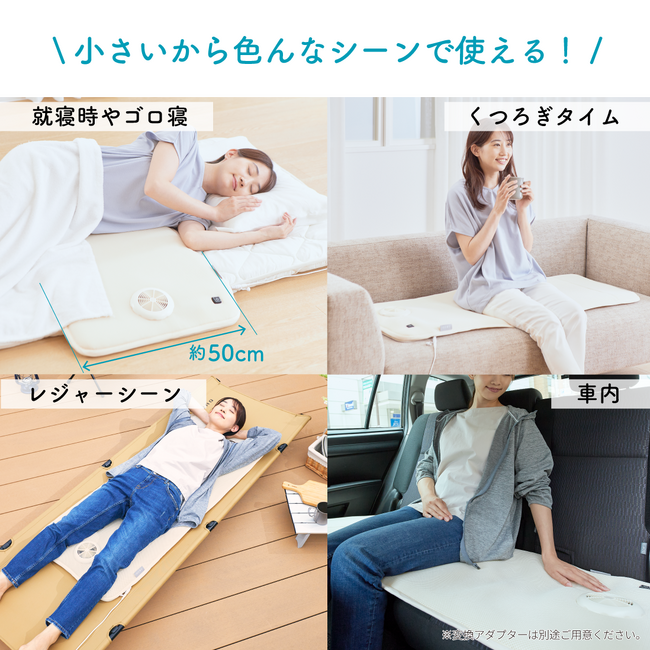 暑い季節は寝汗によるジメジメした寝具の不快さから睡眠の環境が低下しがちです。本製品はマット内に空気の通り道を作り、ファンによってマット内部にこもった熱や湿気を排出し、蒸れを抑えます。継続的に空気の流れを作ることで、快適な温度と湿気をキープします。シリーズの中でも最もコンパクトなサイズで、持ち運びやしやすく手軽に使えます。