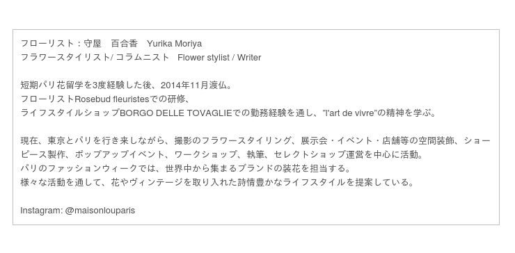 今回は、パリと東京でフラワースタイリストとして活躍する守屋 百合香さんをお迎えして、鮮やかな季節の花々とパレショコラの組み合わせをご紹介いたします。