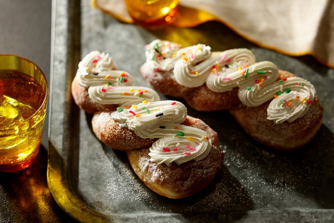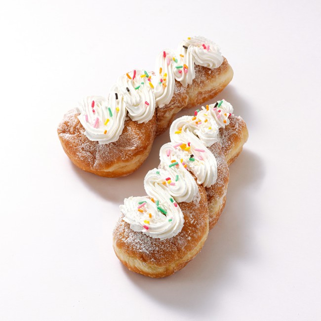 今回、注目の「クァベギ」を味や食感をお楽しみいただけるよう、冷やしておいしい新感覚のクイーンズ伊勢丹オリジナル「クァベギ」として完成しました。クイーンズ伊勢丹の「クァベギ」は、サクサクふわふわ生地のツイストドーナツに、お店で丁寧に泡立てて作ったホイップクリームをたっぷり絞り、上にカラフルなチョコスプレーをかけました。冷やすことで、常温で食べるよりもさっぱりとした印象に変わります。また、ホイップクリームを冷やすことで味が締まり、自然な甘さで丸々1個ぺろりと美味しくお召し上がりいただけます。