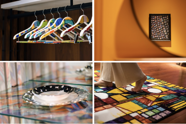 知的障害のあるアーティストが生み出す、異彩を放つアートの力で、訪れるゲストの方々の感性を刺激し、新たな視界や価値観が生み出される宿泊体験を通じて、豊かな気持ちを味わっていただけるようなコンセプトルームをスタンダード、スイートの各タイプで両社が手掛け、乃村工藝社に空間デザイン・施工協力いただきました。期間中、各室一日一組限定でご宿泊いただける特別な客室で、異彩を放つアートをさまざまな素材・手法で取り入れ、「ヘラルボニー」の世界観を楽しめるインテリアに加え、手に取ってご使用いただけるアイテムのセレクトにもこだわり、空間全体を演出します。