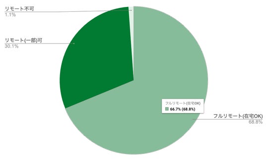 Pythonの案件では、フルリモート(在宅OK)の割合が66.7%と約3分の2を占めており、リモートが一部可能な案件も29.2%あります。一方、リモート不可の案件はわずか4.2%に過ぎません。このデータから、Python開発は場所を選ばない働き方と高い親和性があり、多くのエンジニアが柔軟な勤務形態を選択できることがわかります。これはワークライフバランスの向上や地方在住者のキャリア機会拡大に貢献していると言えるでしょう。
