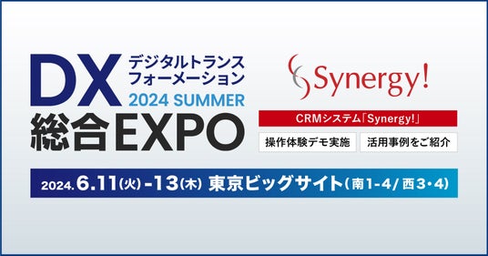 シナジーマーケティング株式会社(所在地:大阪市北区、代表:奥平 博史、以下:当社)は、2024年6月11日(火)~13日(木)、東京ビッグサイトで開催される「DX 総合EXPO 2024 夏 東京」を構成する専門展「営業DX EXPO 2024 夏 東京」へブース出展します。
