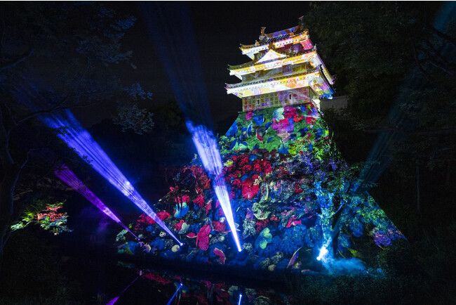 この催しは、西尾城の本丸丑寅櫓や鍮石門に、初夏に咲き誇る西尾市のシンボルフラワー・バラなどの花々のデジタルアニメーションや、西尾市の歴史や文化をテーマにした豪華絢爛な絵巻などのプロジェクションマッピング映像を投影します。開催に合わせて公式写真を公開しました。観覧は無料で、事前申し込みは不要です。