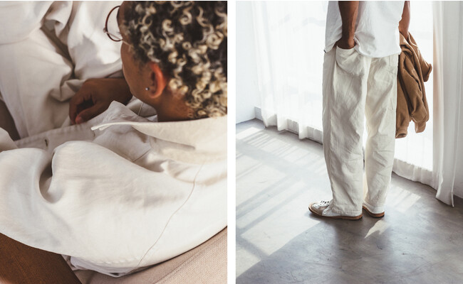CONFECTの服は、リネン素材をはじめとした上質な天然素材を使用し、着心地や素材感にとことんこだわりながら日本のものづくりの精神を大切に、一つ一つ丁寧に生産しています。