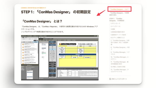 株式会社シムトップス(本社:東京都品川区、代表取締役:水野貴司)は、現場帳票システム「i-Reporter」の利用者向けマニュアルを従来のPDF形式から、Web形式へリニューアルいたしました。本取り組みは、i-Reporterユーザーが導入~安定稼働まで様々なタイミングで直面する課題に対して、適切な情報に素早くアクセスできることを目的に実施しております。