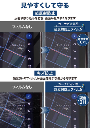 BELLEMOND「貼るだけ簡単キレイ!カーナビ守る君(超反射防止タイプ)」の特徴