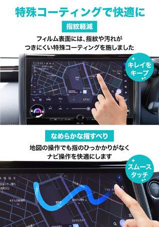 サラサラとした触り心地で指滑りがよく、快適なナビ操作をサポートします。