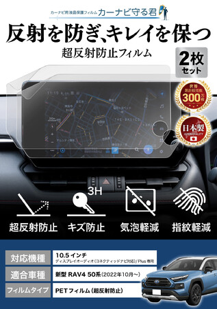 Fun Standard株式会社(本社:福岡県大野城市)が展開するモバイルアクセサリーブランド「BELLEMOND(ベルモンド)」は、トヨタ 新型 RAV4 50系 (2022年10月発売モデル) 10.5インチ ディスプレイオーディオ(コネクティッドナビ対応)/ Plus 専用フィルムを発売しました。超反射防止加工を施したフィルムは、反射や映り込みを軽減するだけでなく、キズ防止、指紋軽減などの機能も付いています。