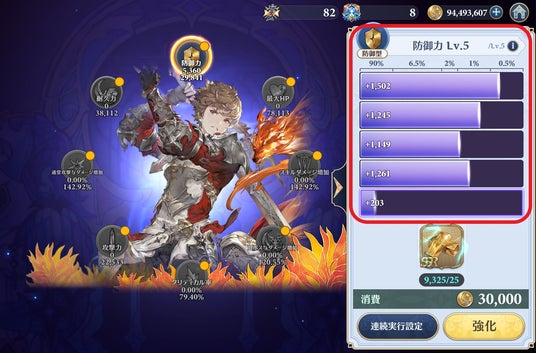 ・各ステータスは解放後、ゴールドとアイテムを消費することで強化することができ、強化時にそれぞれ一定の確率でステータスの値が付与されます。