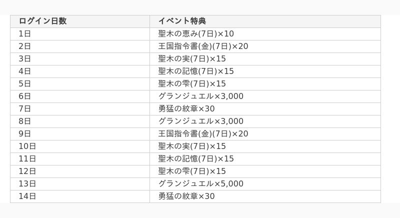 (4).イベントにて獲得できる「聖木の恵み」「聖木の実」「聖木の記憶」「聖木の雫」「王国指令書(金)」は7日間の使用期限があります。
