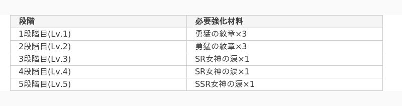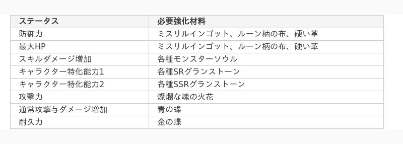 ∟強化に必要な材料および個数は、キャラクターや段階によって異なります。詳細はゲーム内にてご確認ください。
