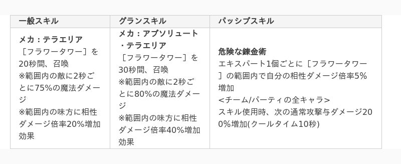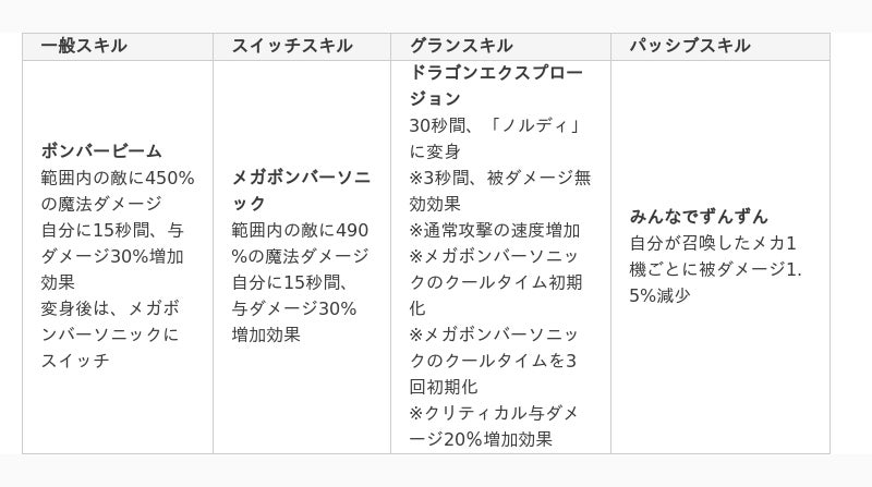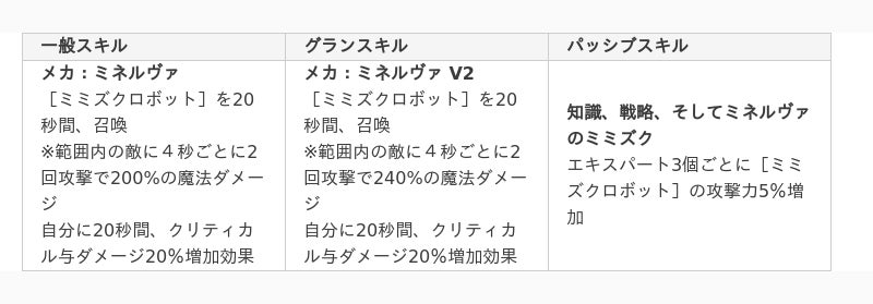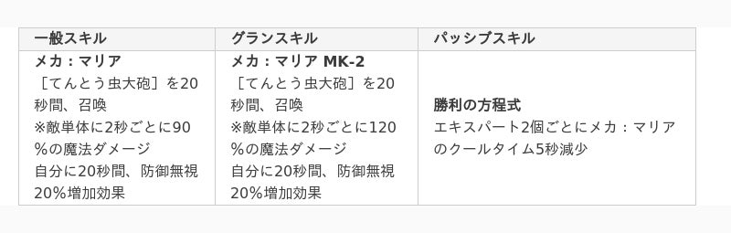 ※「エキスパート」:重複数に応じてメカスキルの効果を強化/1重複ごとに攻撃力増加