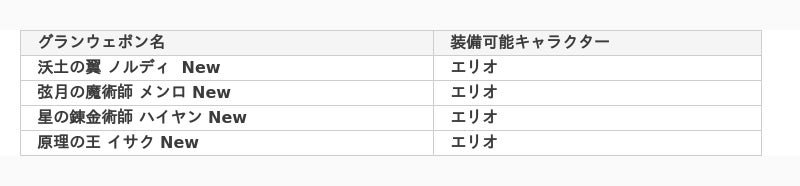 ・[ 図鑑 > グランウェポン ]に「ノルディ」「メンロ」「ハイヤン」「イサク」が追加されます。