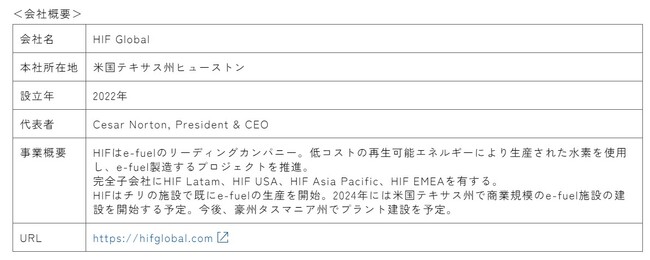 株式会社商船三井(本社:東京都港区、代表取締役社長:橋本剛、以下「商船三井」)、伊藤忠商事株式会社(本社:東京都港区、代表取締役社長COO:石井敬太、以下「伊藤忠商事」)、HIF Global(本社:米国テキサス州、President & CEO:Cesar Norton、以下「HIF」)の100%子会社のHIF Asia Pacific Pty Ltd、JFEスチール株式会社(本社:東京都千代田区、代表取締役社長:北野嘉久、以下「JFEスチール」)の4社は、1.日本国内での二酸化炭素(以下「CO2」)の回収、2.豪州への船舶輸送、3.豪州における同CO2を原料とする合成燃料(以下「e-fuel」)の製造および貯蔵、ならびに4.豪州からのe-fuelの輸出を含めたサプライチェーン構築に関する事業化調査を共同で実施することに合意しました。
