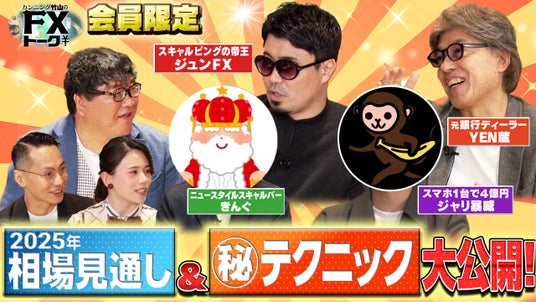 シーズン7は、ジュンFXさんの著書を取り上げながら、トレードスタイルも年齢層もバラバラなトレーダーたちがリアルな意見を交換していきます。トレード環境の話題では、スマホ1台で億を稼ぐ「暴威軍」の若頭ことジャリ暴威さんに、元外国為替ディーラーとして20年以上活躍するYEN蔵さんの複数モニーターを活用した熟練のトレード術など、出演者たちのトレード部屋を公開しながらそれぞれの取引スタイルに迫ります。ジュンFXさんを尊敬するあまり大阪に引っ越したというきんぐさんの取引エピソードにも注目です。