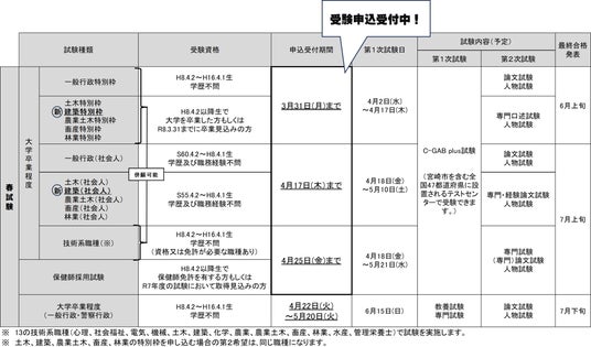 宮崎県職員採用試験(大学卒業程度(特別枠、社会人、技術系職種))及び保健師採用試験実施の受験申込み受付中!!