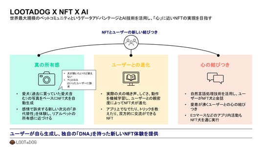 世界最大規模のペットコミュニティというデータアドバンテージとAI技術を活用し、LOOTaDOGが目指す「心」に近いNFTの実現についてお話させていただきます。