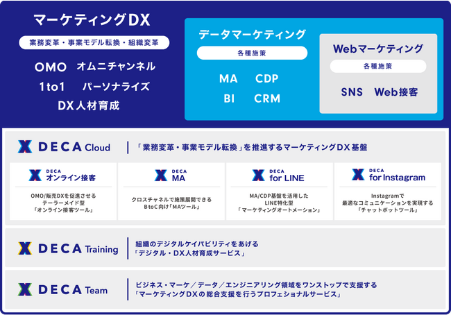 DECAは、『「テクノロジー」と「人」の力で、あらゆる組織のデータ利活用を推進させ、飛躍的な事業成長を支援するマーケティングDX支援サービス』として新たにサービス提供を開始します。