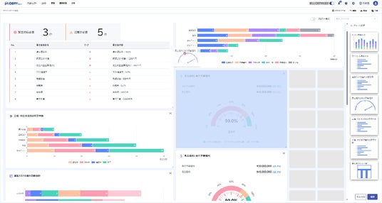 - ダッシュボード画面:必要なチャートをタイル形式で自由に配置し、プロジェクトの特性に合わせた画面を作成可能。