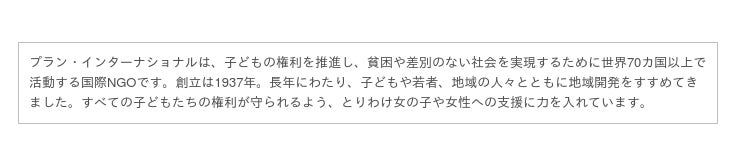 プランは毎年、世界の女の子の現状を報告する世界ガールズ・レポートを発表しています。