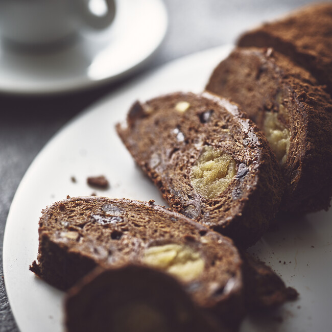 昨年大好評をいただいた、シュトーレン・ショコラ。シェフこだわりの、南米・エクアドルの固有種である希少なアリバ種のカカオ豆からしか引き出せない上質なチョコレートと、香り高いブランデー・アルマニャックにじっくり漬け込んだドライフルーツにマジパンも加えて、芳醇でエレガントなシュトーレンに仕上げました。