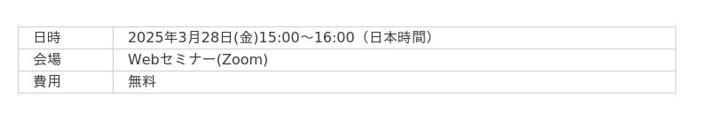 開催日時:2025年3月28日(金)15:00~16:00(日本時間)