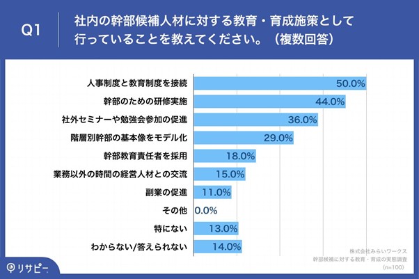 ■幹部候補に対する育成施策、「人事制度と教育制度を接続」が50.0%で最多