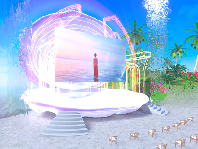 ・巨大な真珠貝を模したステージに大きなスクリーンを設置、ブランドムービーをはじめ様々な映像を放映します。