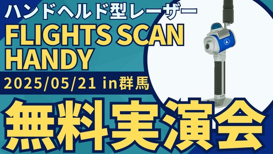 株式会社FLIGHTS(本社:東京都渋谷区、代表取締役:峠下 周平)は、建設・測量業界の生産性向上に貢献するハンドヘルド型レーザースキャナー「FLIGHTS SCAN HANDY」の無料実演会を、来る2025年5月21日(水)に群馬県で初めて開催いたします。本実演会は、地元に拠点を置く株式会社ソッキテック(本社:群馬県前橋市、代表取締役:小柏 博)との共催です。