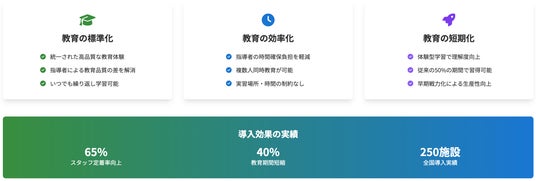 VRでの自学習により実際の指導時間を大幅に短縮。人手不足の中でも質の高い教育を継続