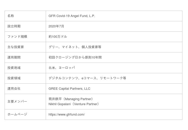 スカウトファンドは、2018年12月に設立したGFR Fund II, LPのサブファンドに該当し、ポストコロナで成長が見込まれるデジタルコンテンツやeコマース、リモートワーク等の分野で、GFR Fund II, LPが投資するステージよりも更に早いプレシードステージのスタートアップに積極的に投資をしていきます。投資地域は北米とヨーロッパを想定しています。