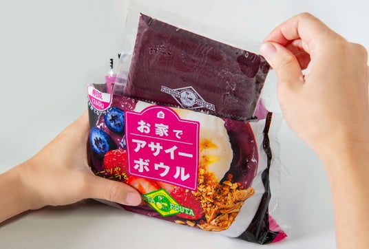 既存品の『お家でアサイーボウル』はミキサーやブレンダーを使わずにアサイーボウルのベースを作ることができる冷凍ミックスベースとして2012年に発売した当社の定番商品です。本年度4月から6月にかけての売上高が前年同期比500倍以上と非常にご好評いただいております。