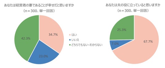 - 経営者の妻であることが幸せかわからない42.3%、一方で、夫の役に立っていると思う67.7%