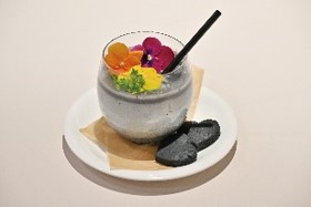 濃厚な黒ゴマと有機豆乳のラテ。バンクシーのキャンパスである街角を表現。