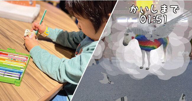 精巧な「ポニー」のフィギュアに色鉛筆で色付けして専用スキャナーで読み取ると、スクリーンの中で伝説の生き物「ペガサス」に変身し、さまざまな乗り物と一緒にレースを繰り広げます。まるでフィギュアに魔法がかかったかのような、冬にぴったりのファンタジックな「工作×デジタル」体験をお楽しみいただけます。